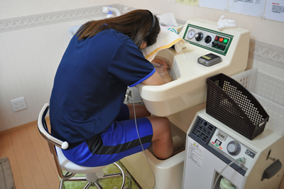 ゲルマニウム温浴で手足をお湯につかっていただくと、体全体が芯からぽかぽかに温まり、リラックスして眠くなります。